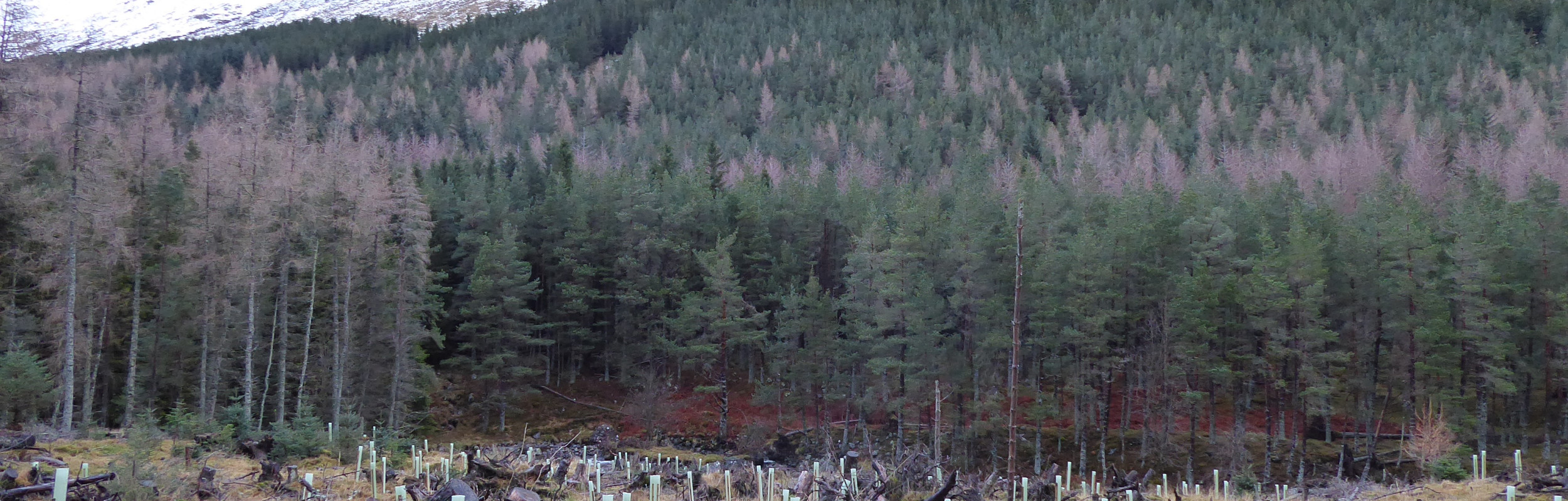 The Sitka spruce, although not native to Scotland, grows exceptionally well in Scotland's nutrient-poor soils and damp climate. Following the loss of forests during World War I, large Sitka spruce plantations were planted across Scotland.