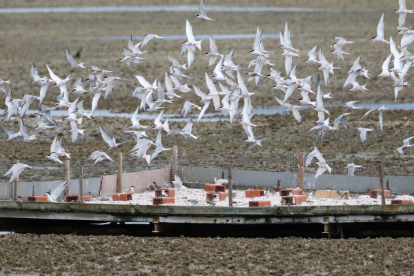 The artificial nesting platform is located on the intertidal mudflats of Montrose Basin Local Nature Reserve. The raft provides a safe nesting site for common terns, with estimates of over 100 chicks observed in the 2024 breeding season.